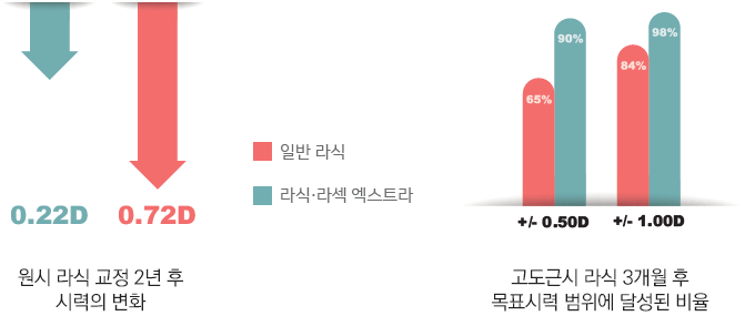 LASIK·LASEK 중 약해지는 각막의 힘을 보강하는 Lasik·Lasek Xtra는 퇴행을 억제하여 좋은 시력을 오랫동안 유지하게 한다는 사실이 여러 연구를 통해 검증되었습니다.